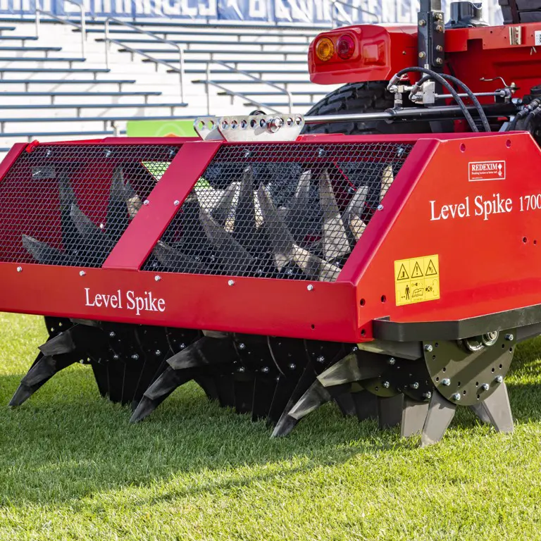 Level-Spike är en snabb och beprövad maskin för att skapa luftningsslitsar för att underlätta dränering och släppa in luft i gräsytor. Level-Spike kan uppnå ett maximalt djup på 250 mm, valfria knivar för att ändra slitsmönstret, inklusive ihåliga pinnar.